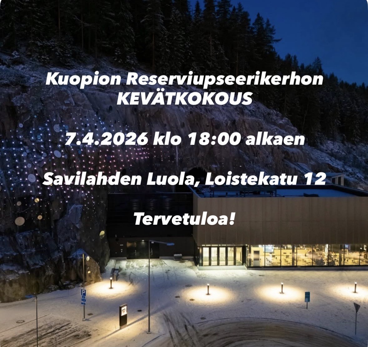 Aluksi Kuopion kaupungin turvallisuusjohtaja Mikko Moilanen esittelee meille Luolan tiloja ja toimintaa väestönsuojana. Tämän jälkeen nautimme kahvit ja pidämme kerhon kevätkokouksen.
