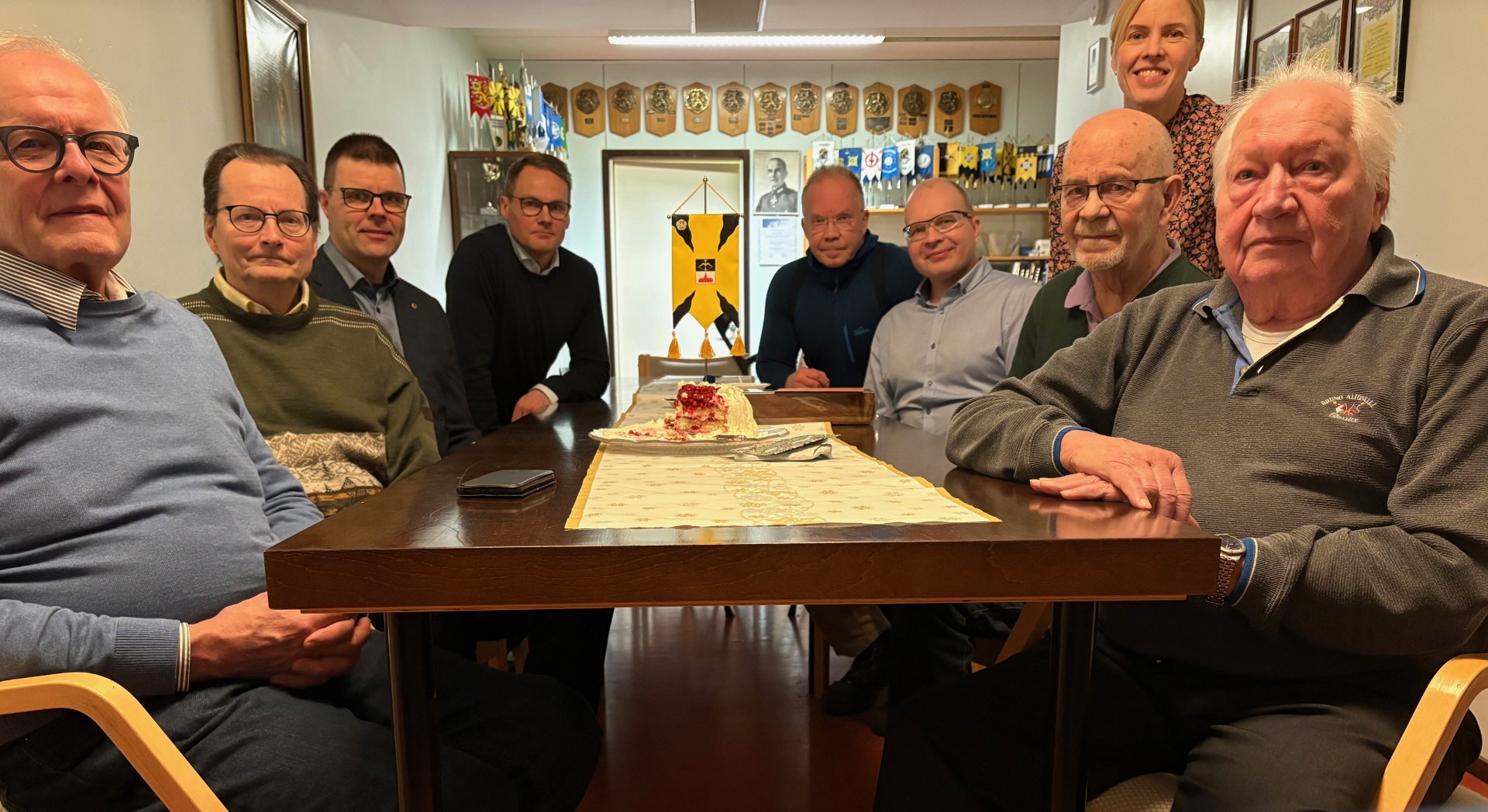 9.2.2026 juotiin Pohjois-Savon Reserviupseeripiirin piiritoimistolla KRU:n puheenjohtajakahvit oikein täytekakun kera. Koolla oli kerhon puheenjohtajat vuodesta 1984 tähän päivään. Samalla päästiin juhlistamaan myös Simon pyöreitä vuosia.